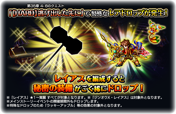 ※メインストーリー第35章のEXクエストは1日5回無料コンティニュー及びRANK経験値2倍キャンペーンの対象外となります。