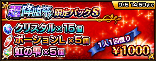 『超降臨祭』の期間中、クリスタルなどがセットになった4種類の『超降臨祭限定パック』を販売いたします。