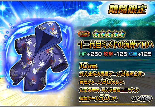 | ★5援護装備 | 十二代目ミズキの海岸アロハ New!! |