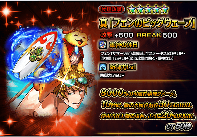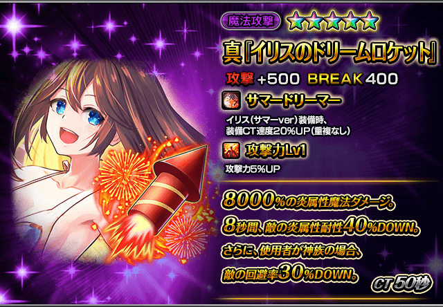 | 10個 | 真装備 真『フェンのビッグウェーブ』 真『イリスのドリームロケット』の いずれか1個(各1回限り) |