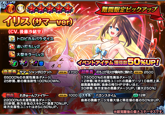 また、『フェン(サマーver)』『イリス(サマーver)』を編成することにより『サマートレジャー』イベント交換アイテムの獲得数がUP!イベントを有利に進めることができるようになりますので、ぜひこの機会にご利用ください。