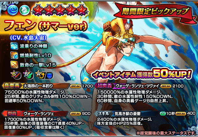 ※『フェン(サマーver)』『イリス(サマーver)』の出現確率がアップします。