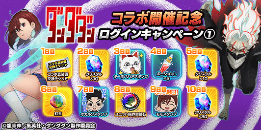 TVアニメ「ダンダダン」とのコラボ前編開催を記念し、下記の期間、ログインキャンペーンを開催します。