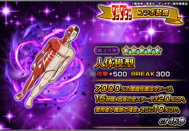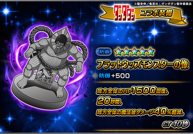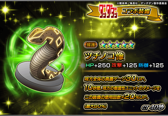 また、『ダンダダン』コラボユニット・コラボ装備を編成することによりコラボイベントクエストの交換アイテムの獲得数がUP!イベントを有利に進めることができるようになりますので、ぜひこの機会にご利用ください。