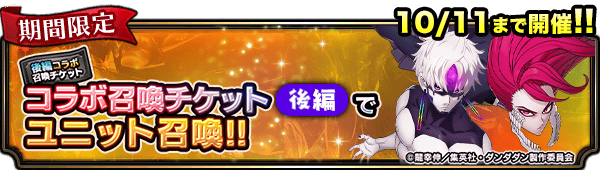 イベント交換所や限定ミッション等で獲得できる『後編コラボユニット召喚チケット』を使用することで、コラボユニットなどが出現するユニット召喚に挑戦することができます。