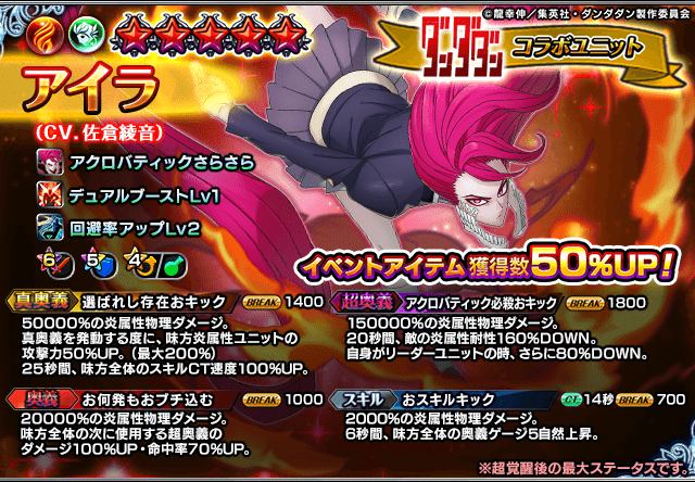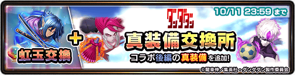 また、『ダンダダン』コラボユニット・コラボ装備を編成することによりコラボイベントクエストの交換アイテムの獲得数がUP!イベントを有利に進めることができるようになりますので、ぜひこの機会にご利用ください。