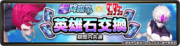 ※今回の英雄石は『超降臨祭×ダンダダン』交換期間内で共通となります。