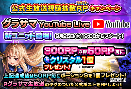 生放送が終了するまでに#グラサマ生放送のタグがついた対象ポストをRPしよう!