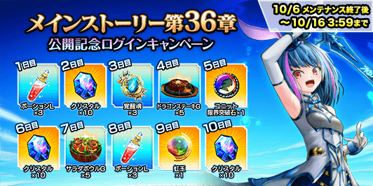 メインストーリー36章の公開を記念し、下記の期間、ログインキャンペーンを開催します。