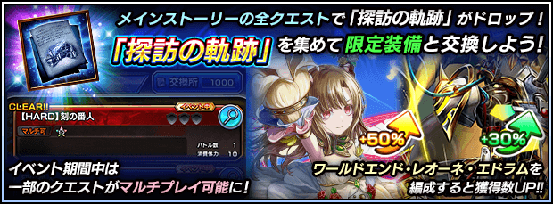 また、『ワールドエンド・レオーネ』を編成することによりメインストーリーイベント交換アイテムの獲得数がUP!イベントを有利に進めることができるようになりますので、ぜひこの機会にご利用ください。