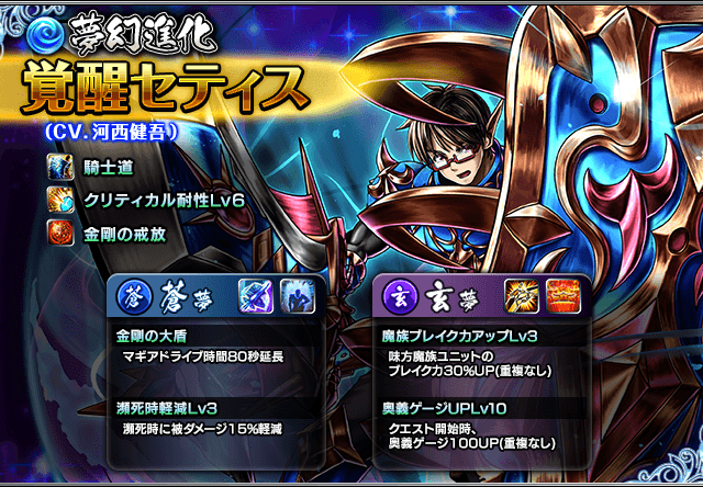 味方がマギアドライブ発動時、マギアドライブの時間を120秒延長する。自身が状態異常でない場合、奥義ゲージ3自然上昇(重複なし)