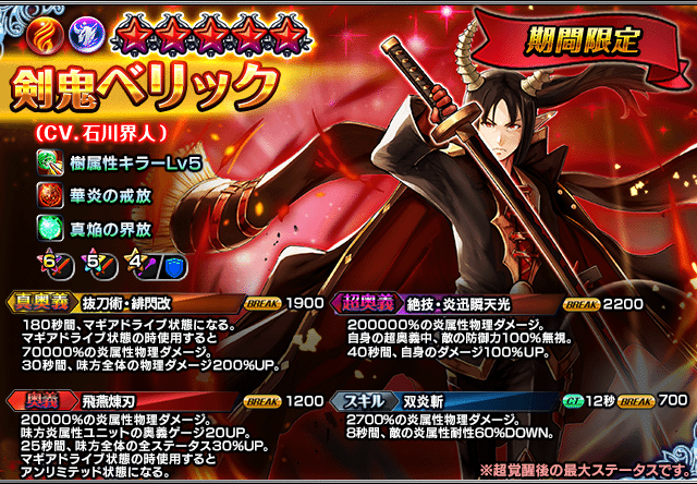 ※真奥義による「初回使用時は奥義ゲージ自然上昇量2倍」は、具体的には「状態異常の味方ユニットは8自然回復、状態異常でない味方ユニットは16自然回復」となります。また、wave毎ではなくバトル中一度だけ発動します。