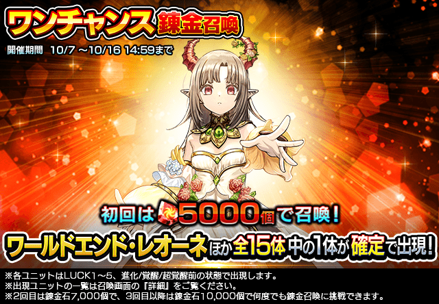 超覚醒ユニット『ワールドエンド・レオーネ』登場!超降臨祭&ワンチャンス錬金召喚!