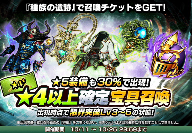 ※各「種族の遺跡」BOX装備召喚の開催期間は無期限です。