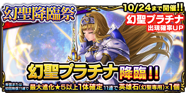 下記の期間、『幻聖プラチナ』が登場する英雄召喚『幻聖降臨祭』を開催します。