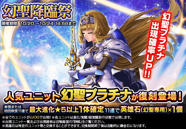 超覚醒ユニット『幻聖プラチナ』復刻!『幻聖降臨祭』