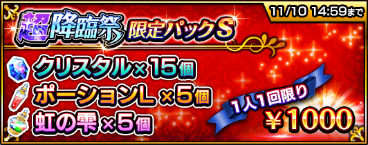 『超降臨祭』の期間中、クリスタルなどがセットになった4種類の『超降臨祭限定パック』を販売いたします。