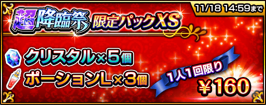 『超降臨祭』の期間中、クリスタルなどがセットになった4種類の『超降臨祭限定パック』を販売いたします。