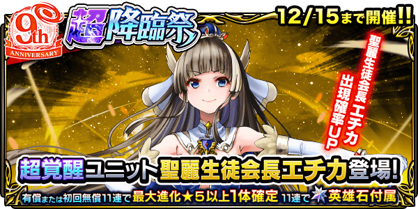 超覚醒ユニット『聖麗生徒会長エチカ』登場!超降臨祭&ワンチャンス錬金召喚!