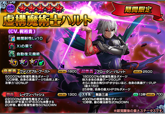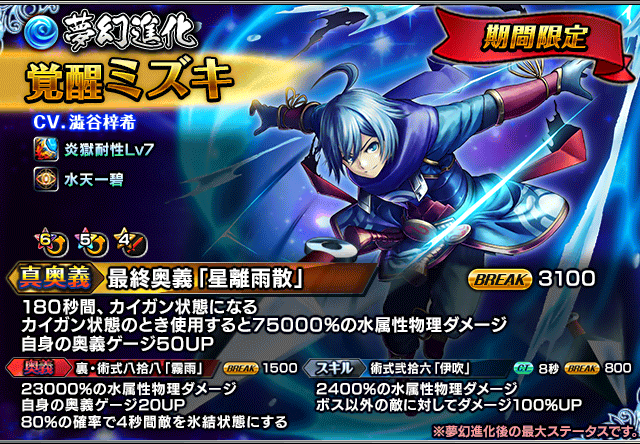 ※『キリサメ』『ミズキ(初期)』『ヴァルティー(樹)』『ヴィクトワール』『虚構魔術士ハルト』は「通常ラインナップ」の英雄石交換にも登場しております。(交換限数は各1回です。「通常ラインナップ」の限数はリセットされませんので、「期間限定」の優先を推奨します。)