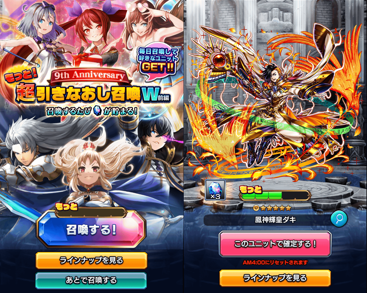 確定するまでは好きなユニットが出るまで毎日召喚することができますので、毎日挑戦しましょう!