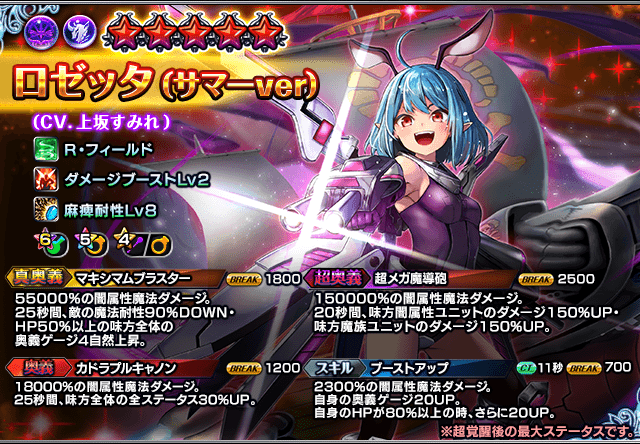 ※アプリ内の召喚ラインナップ画面から最大強化時のユニット詳細を表示することができます。