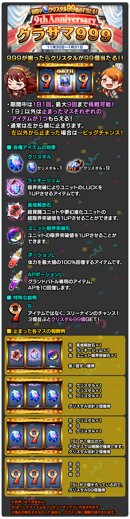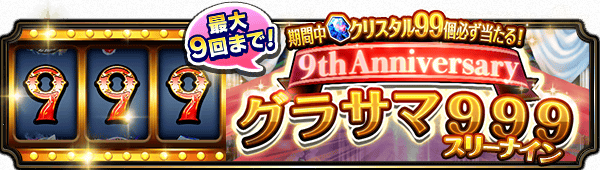 期間中にクリスタル99個が必ず当たる!9周年記念『グラサマ999』