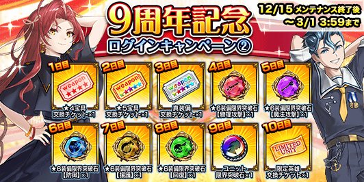 『9周年記念ログインキャンペーン②』についてお知らせします。