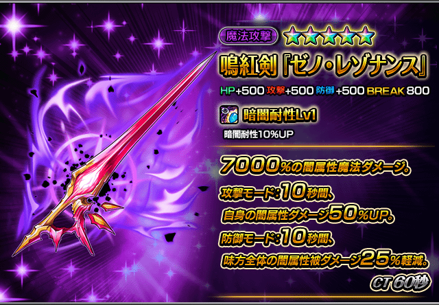 - 強力な★5魔攻装備 鳴紅剣『ゼノ・レゾナンス』 が登場します。