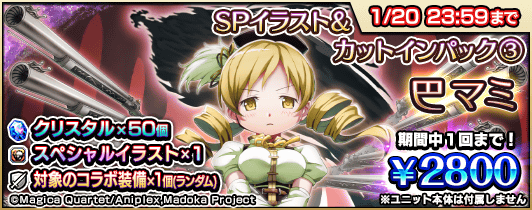 コラボ英雄召喚の開催に合わせ、『巴マミ』『美樹さやか』『佐倉杏子』のスペシャルイラスト入りのパックの販売を開始します。