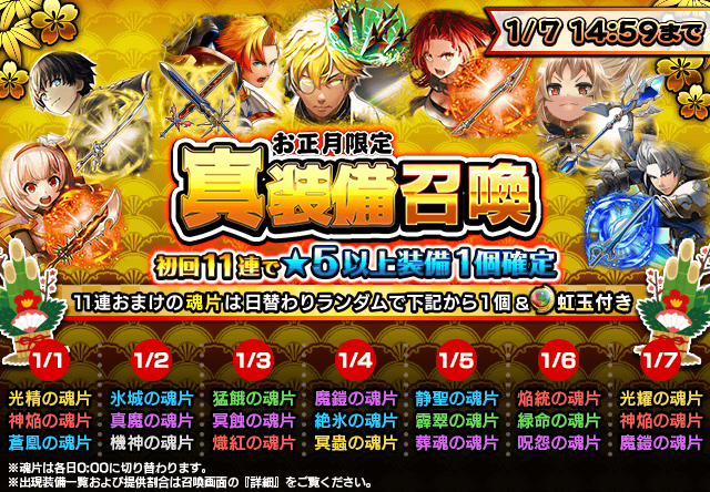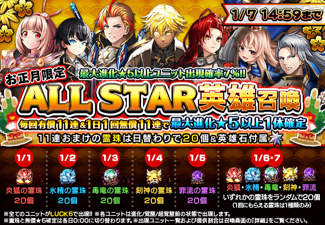 【追記】お正月限定!日替わり超覚醒/覚醒素材付きALL STAR 英雄召喚&真装備召喚