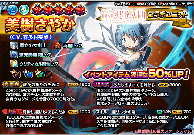 ※美樹さやかの超奥義による物理ダメージUP効果は、マーレットやミゼット等による効果とは重複しません。