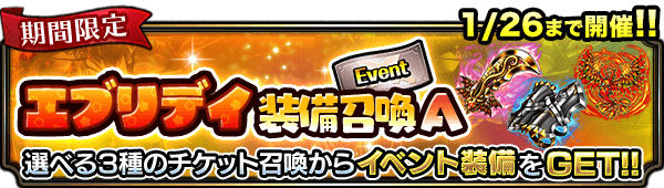 下記の期間、イベント限定装備が出現する『エブリデイ装備召喚』を開催いたします。