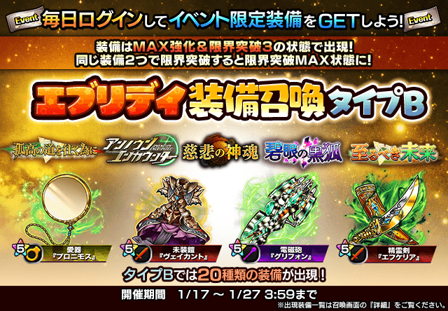 イベント限定装備が出現!エブリデイ装備召喚ABC