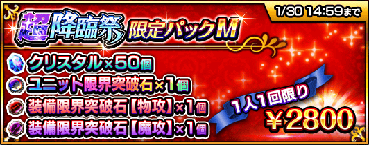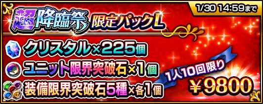 『超降臨祭』の期間中、クリスタルなどがセットになった4種類の『超降臨祭限定パック』を販売いたします。