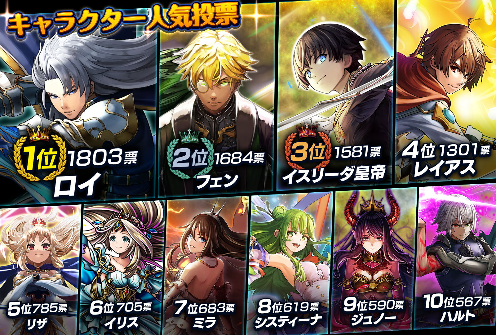 見事1位に輝いた『ロイ』は新たに描き下ろしイラストでタイトル画面に登場予定!続報にご期待ください。