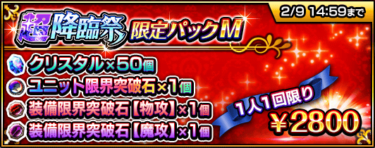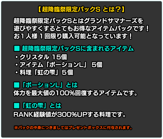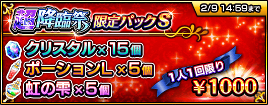 『超降臨祭』の期間中、クリスタルなどがセットになった4種類の『超降臨祭限定パック』を販売いたします。