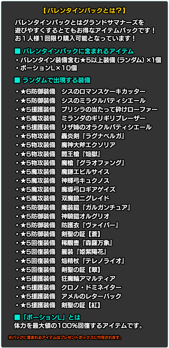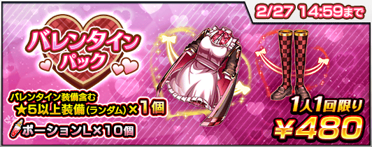初登場!『バレンタインパック』2種!★6装備限界突破石交換チケットがゲットできるパックも!