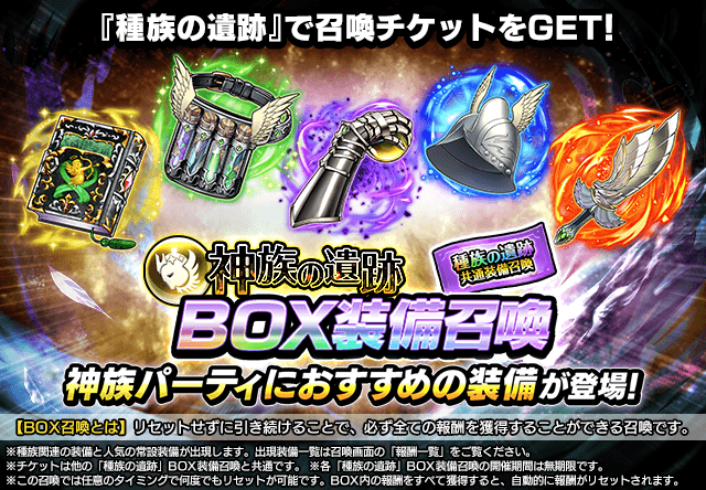 ※各「種族の遺跡」BOX装備召喚の開催期間は無期限です。