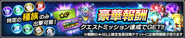 ※チケットは他の「種族の遺跡」BOX装備召喚と共通です。またチケットの期限は無期限です。