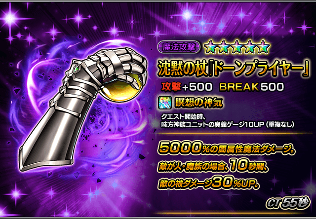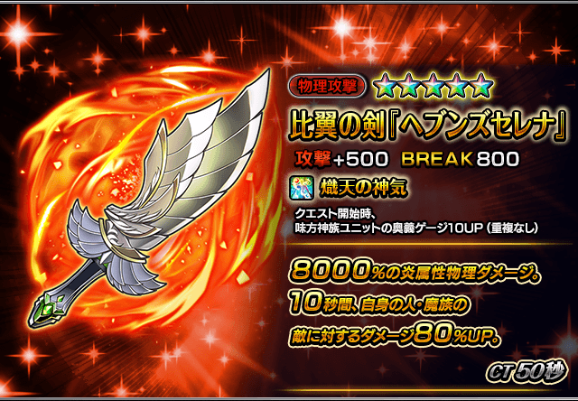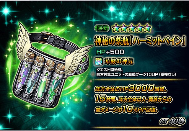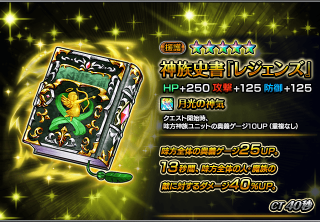 例)『神族の遺跡』限定装備5種類を編成した場合、味方人族ユニットの奥義ゲージが50UPします。