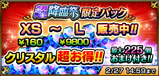 超降臨祭の開催に合わせ、お得なクリスタルセット『超降臨祭限定パック』4種類を販売いたします。