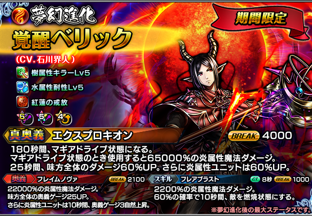 ※『ベリック(初期)』『ヴォックス(水)』『レオーネ(初期)』『デューク』は「通常ラインナップ」の英雄石交換にも登場しております。(交換限数は各1回です。「通常ラインナップ」の限数はリセットされませんので、「期間限定」の優先を推奨します。)