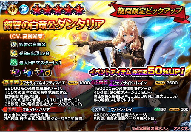 超覚醒ユニット『叡智の白竜公ダンタリア』登場!超降臨祭&ワンチャンス錬金召喚!CV. 高柳知葉さんコメントも