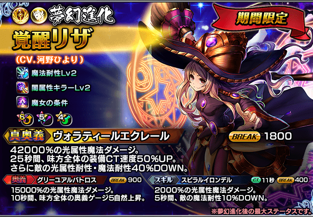 今回は『蝙影の帰宅部長モルク』『ヴェルザード』『アルヴィナ』『ミラ(樹)』『リザ(初期)』『シュリ』が 2/27 から 3/18 23:59 の間、「期間限定」英雄石交換に登場します。