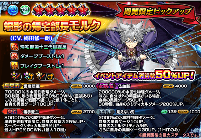 超覚醒ユニット『蝙影の帰宅部長モルク』登場!超降臨祭&ワンチャンス錬金召喚!CV.梅田修一朗さんコメントも