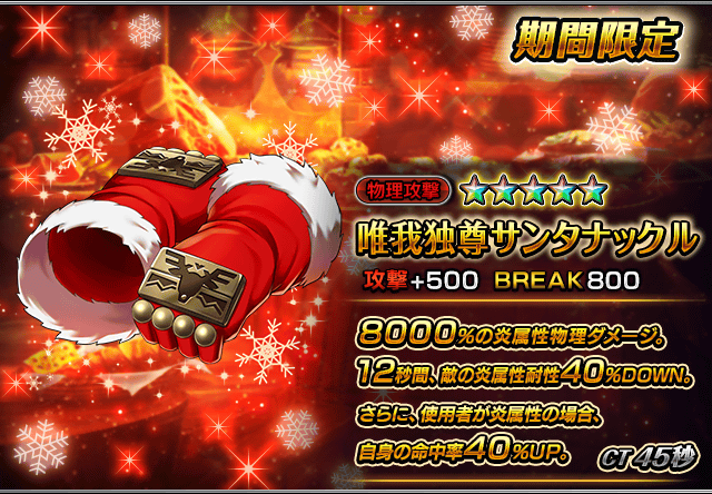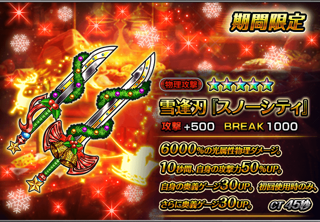 初回のみ無償クリスタルでの11連召喚でも★5装備が1個確定となります。