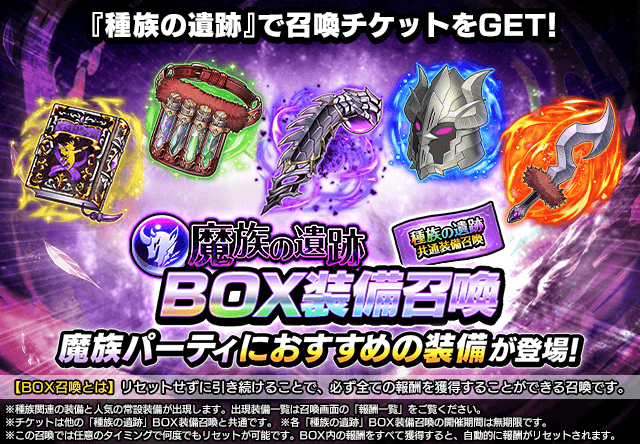 ※各「種族の遺跡」BOX装備召喚の開催期間は無期限です。