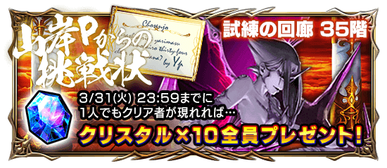 山岸Pからの挑戦状!超高難度35階を追加!&階層クリア報酬リセット!『試練の回廊』開催