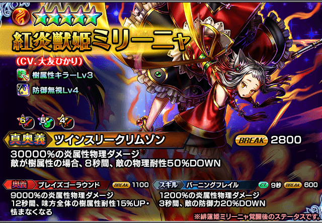 ※26階:獲得時の『緋蓮姫ミリーニャ』は限界突破段階0となり、5回の限界突破で限界突破段階5に達します。また、獲得済みの場合、次回以降の報酬は【限界突破用】ミリーニャx1(LUCK1)となります。